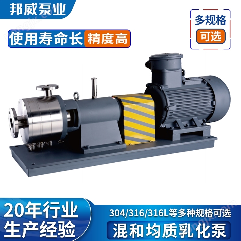 邦威混合均質(zhì)乳化泵是一種集混合、分散、破碎、溶解、精細(xì)、解聚、均質(zhì)、乳化為一體的高效型產(chǎn)品。使用該系列產(chǎn)品后,原來(lái)的傳統(tǒng)生產(chǎn)工藝進(jìn)一步簡(jiǎn)化,生產(chǎn)效率大幅度提高,產(chǎn)品質(zhì)量明顯改善。邦威混合均質(zhì)乳化泵主要工作部件由定子、轉(zhuǎn)子組成。定子在轉(zhuǎn)子高速運(yùn)轉(zhuǎn)的離心力和液力作用下,將物料進(jìn)行強(qiáng)烈的剪切、離心擠壓、撞擊破碎、液層摩擦、湍流均勻等綜合作用,從而使不相溶的固相、液相、氣相等多種介質(zhì)在瞬間均勻精細(xì)、分散乳化。經(jīng)過(guò)往復(fù)循環(huán),使原來(lái)的產(chǎn)品達(dá)到穩(wěn)定的高品質(zhì)產(chǎn)品。