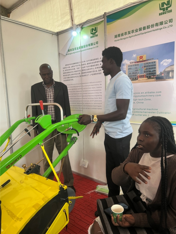 10月28日至31日,2025非洲國際農(nóng)業(yè)博覽會在肯尼亞內(nèi)羅畢舉辦,來自中國和非洲多國農(nóng)業(yè)部門、企業(yè)、研究機構(gòu)、商協(xié)會等200余名代表出席,160余家企業(yè)參展。中國駐肯尼亞大使郭海燕和肯尼亞農(nóng)業(yè)與畜牧發(fā)展部副部長羅諾共同出席了開幕式并致辭。本屆非洲國際農(nóng)業(yè)博覽會特別設(shè)置“湖南農(nóng)機”展區(qū),中聯(lián)農(nóng)機、湖南農(nóng)友、長沙桑錸特等10家企業(yè)攜拖拉機、收割機鍘草機、脫粒機、碾米機等42臺套湖南農(nóng)機具集中亮相,通過機具展示、互動體驗、品牌推介、供需對接、洽談簽約等形式,讓廣大非洲朋友近距離了解湖南農(nóng)機靈活輕便、適應(yīng)性強、性價比高的特點和優(yōu)勢。湖南農(nóng)機受到了非洲客戶的歡迎和青睞,“湖南農(nóng)機”展臺人頭攢動,前來咨詢和交流的客戶絡(luò)繹不絕,42臺套參展機具銷售一空,中聯(lián)農(nóng)機肯尼亞公司、農(nóng)友集團成績亮眼,與當?shù)剞r(nóng)機經(jīng)銷商、大型農(nóng)場達成銷售訂單1020萬元。開幕式當天,中國駐肯尼亞大使郭海燕到湖南農(nóng)機展區(qū)蒞臨指導。郭海燕大使表示,非洲大陸農(nóng)業(yè)發(fā)展?jié)摿薮?,農(nóng)業(yè)現(xiàn)代化是中非合作的重點之一,希望湖南農(nóng)機企業(yè)根據(jù)非洲地理氣候特點,有針對性地加強和改進農(nóng)機產(chǎn)品,更好地滿足和適應(yīng)非洲市場需求。