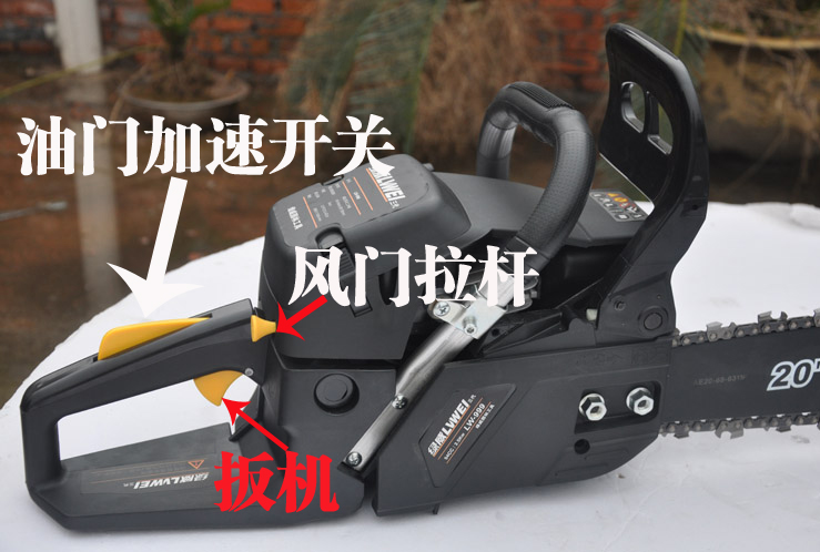 鏈鋸啟動后,必須等導板鏈條受油后才能開始工作(機油泵出油);