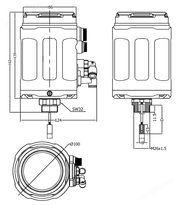 | 安裝方式 | 傾向于安裝在執(zhí)行器頂端,通過螺紋和執(zhí)行器連接 |
